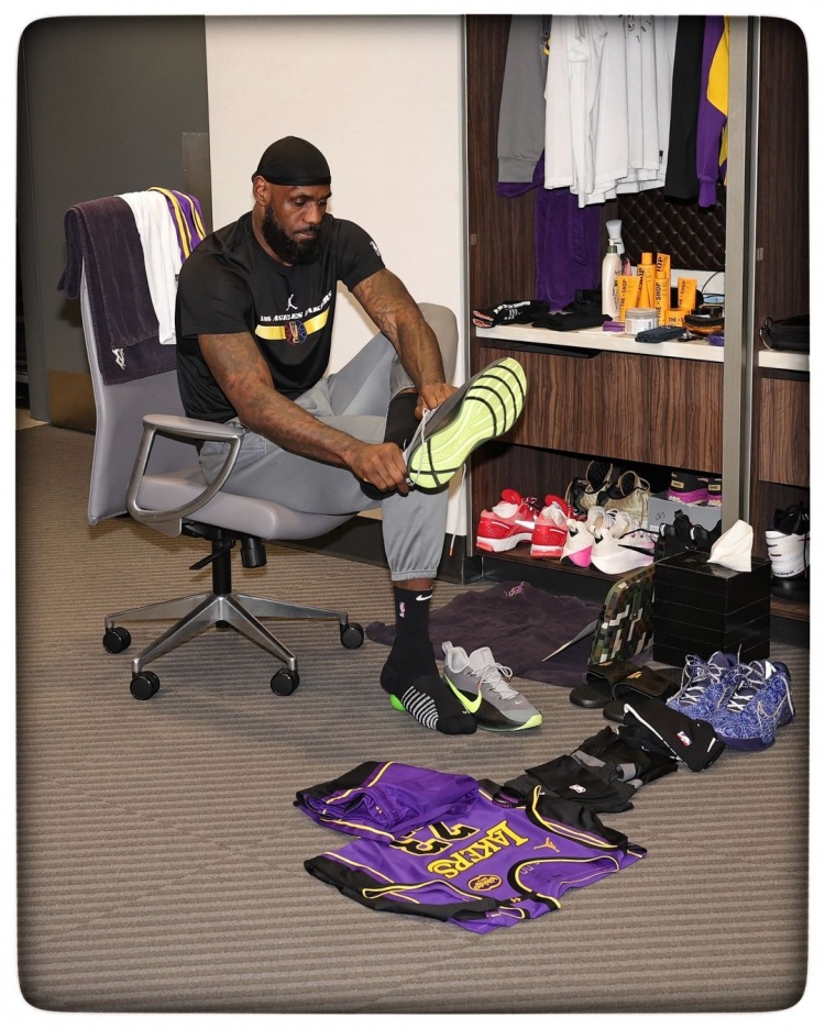 詹姆斯:“我总是同样的做法,除非我感觉哪里不对劲。我在每场赛前都会以同样的方式把球衣摆放好,有时候针对某个对手球员或者球队,我会特意选择上脚一双球鞋。如果我要对阵某个球员,也许那一晚我就会上脚某一款球鞋,那是源于我的竞争天性。”